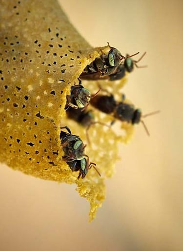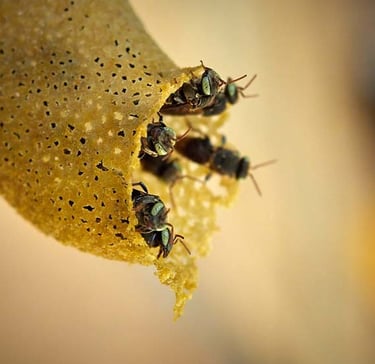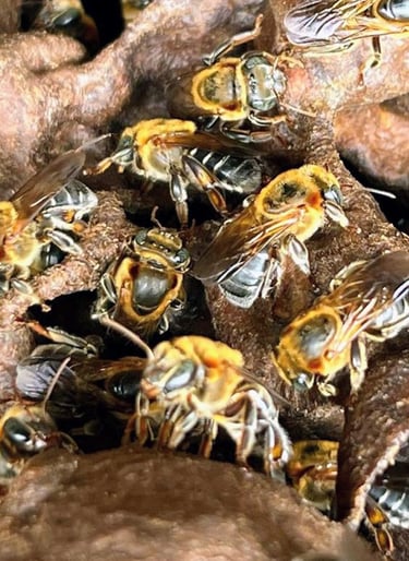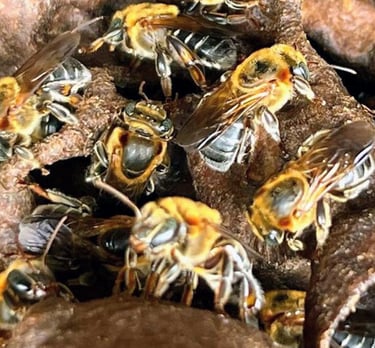 En Colombia trabajamos con abejas nativas adaptadas a las condiciones ecológicas y culturales de cada región donde desarrollamos nuestros proyectos. Valoramos la diversidad de especies locales, promoviendo su conservación y aprovechamiento sostenible como parte fundamental de los ecosistemas.